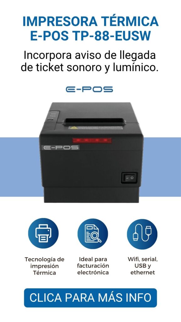 Una de las mejores opciones del mercado es la E-POS TP-88-EUSW, una impresora térmica comandera versátil y confiable, ideal para negocios gastronómicos, tiendas, depósitos y puestos de venta.