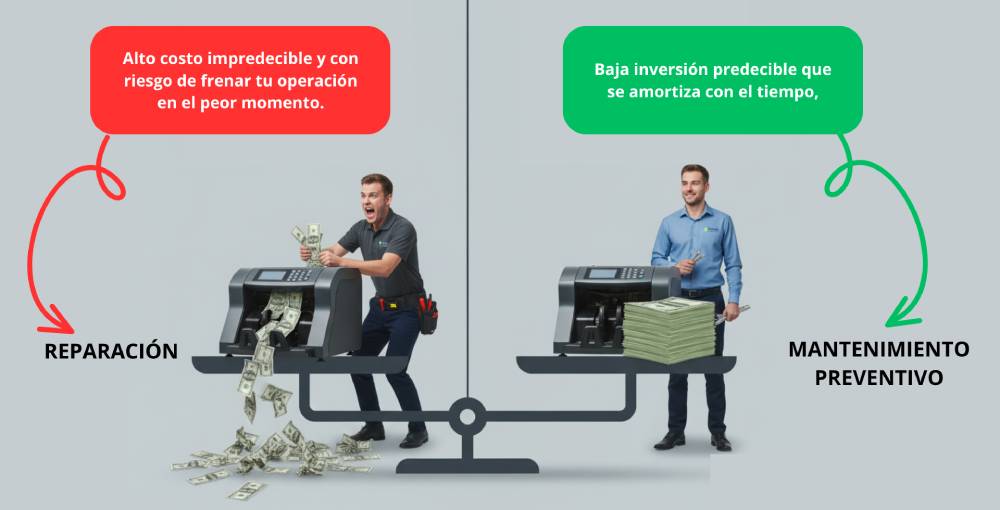 Costo | Alto e impredecible: incluye repuestos, mano de obra urgente y posibles pérdidas por paro del negocio | Predecible y planificado: menor inversión que una reparación inesperada |
