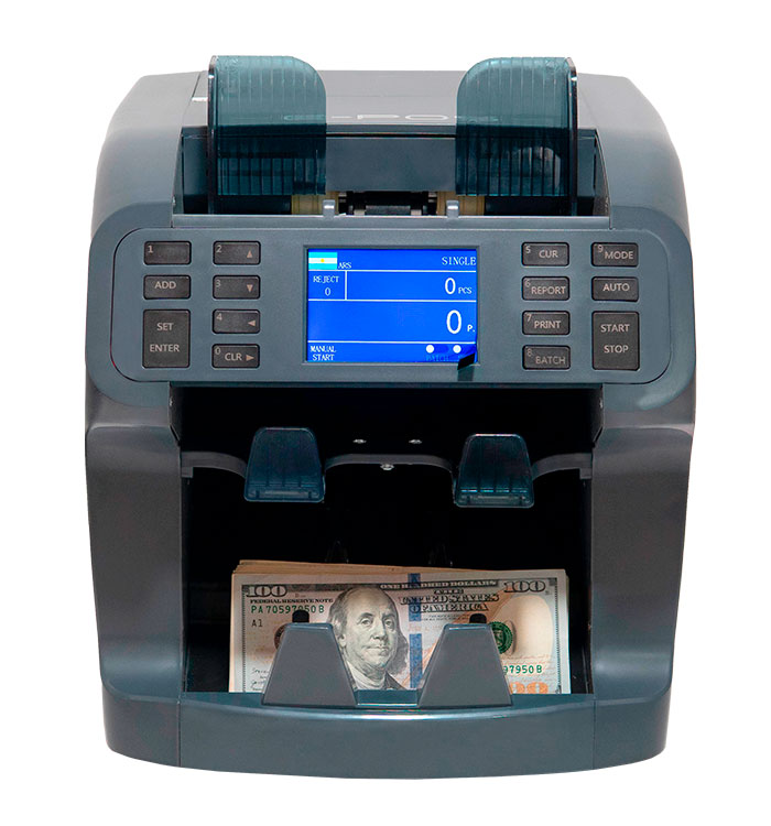 Cuenta con múltiples modos de operación: MIX (valor mixto )/ Single Denomination (una sola denominación) / SORT (clasificación por valor) / VER (verificación de autenticidad) / COUNT (conteo simple) / ADD (conteo acumulativo) / BATCH (agrupación por lotes) /